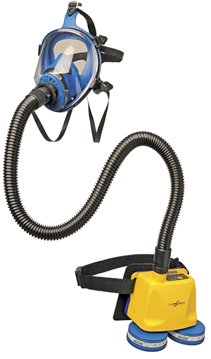 TM 1702 è un dispositivo di protezione delle vie respiratorie in cui l’operatore è alimentato da aria filtrata per mezzo di turbo ventilatore portatile a batteria con attacco per cintura.