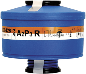 202-A2P3R: filtro combinato per vapori organici con punto di ebollizione superiore a 65°C, polveri, fumi e nebbie.
