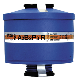 202-A2B2P3R: filtro combinato per vapori organici con punto di ebollizione superiore a 65°C, gas e vapori inorganici, polveri, fumi e nebbie.