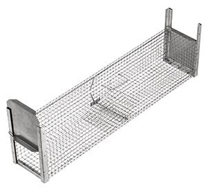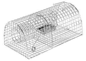 Trappola in rete metallica a doppio ingresso per la cattura non cruenta di ratti e piccoli animali. La maglia metallica 18x18 mm in filo zincato elettrosaldato non consente la fuga a cattura avvenuta.